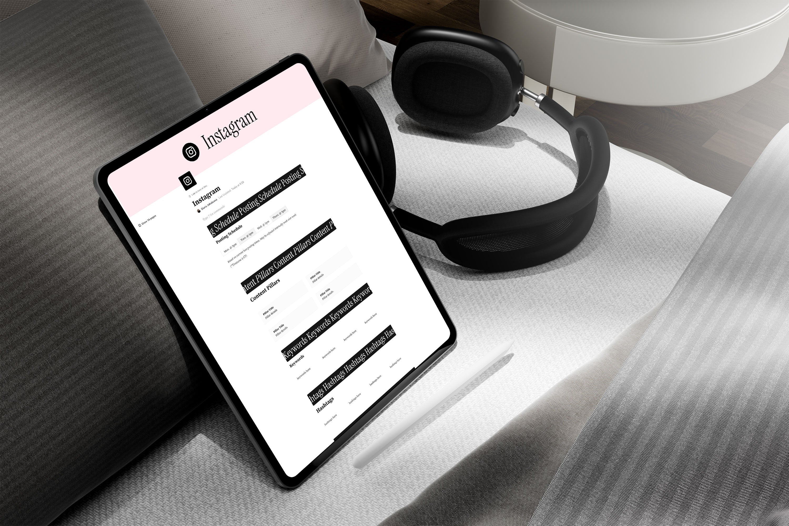 • Platform-specific strategy pages for Instagram, TikTok, Pinterest, LinkedIn, YouTube and Threads