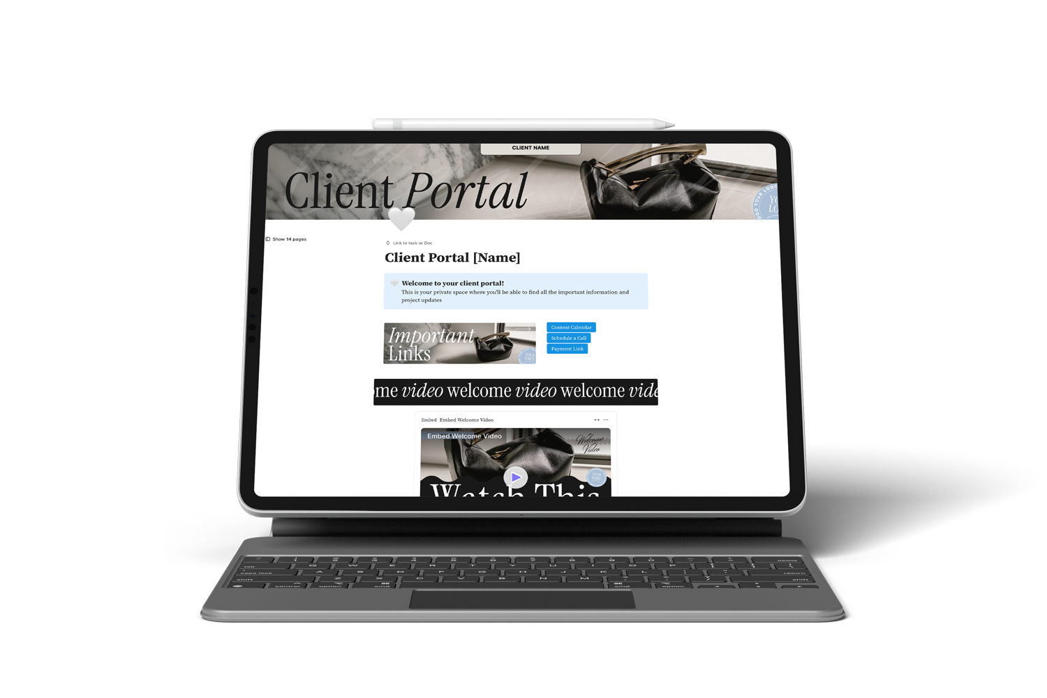 Elevate your client experience with this sophisticated ClickUp Doc portal that functions as a comprehensive digital headquarters for your client relationships.