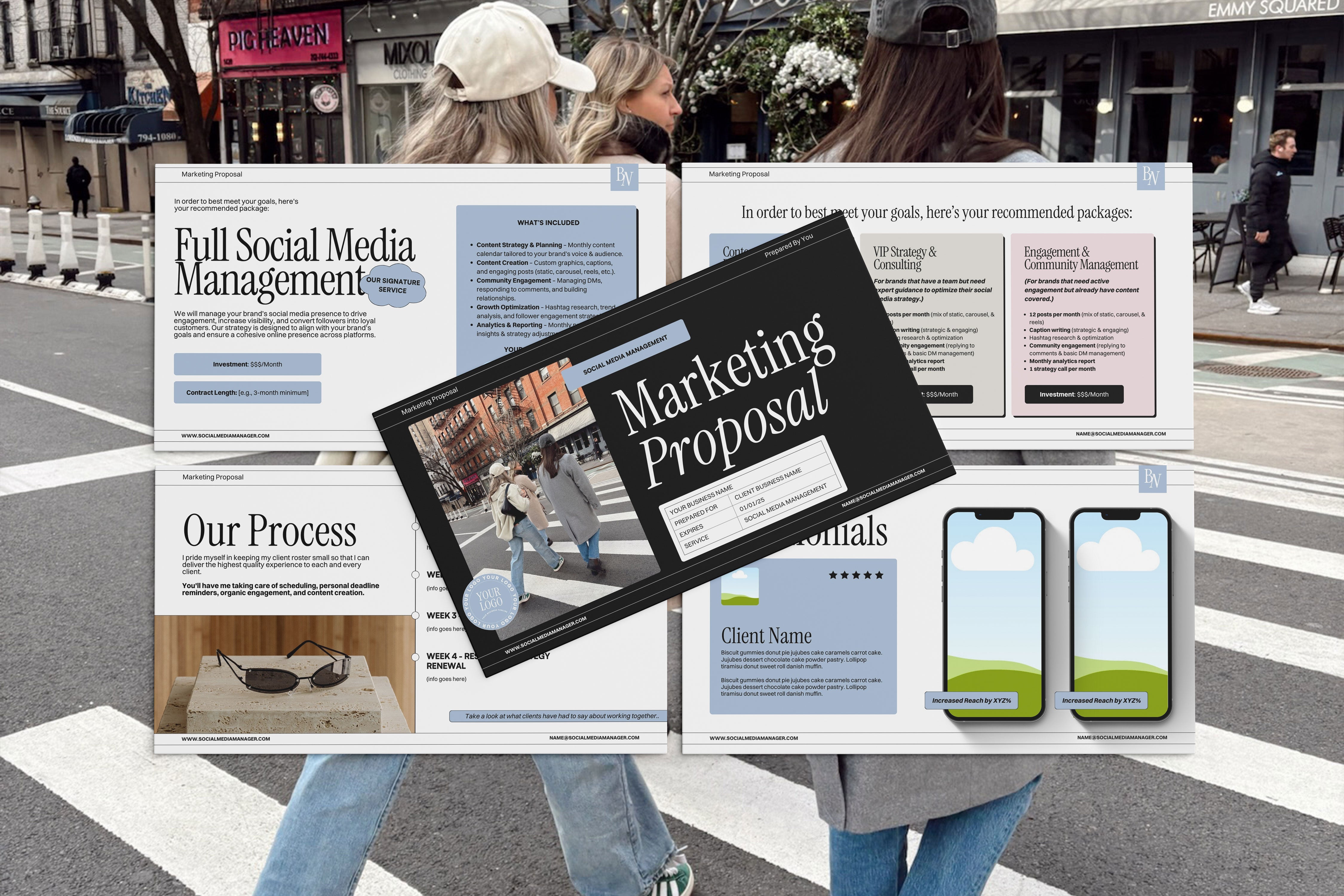 Social media managers targeting premium clients who expect sophisticated presentation and clear, strategic communication at every touchpoint.